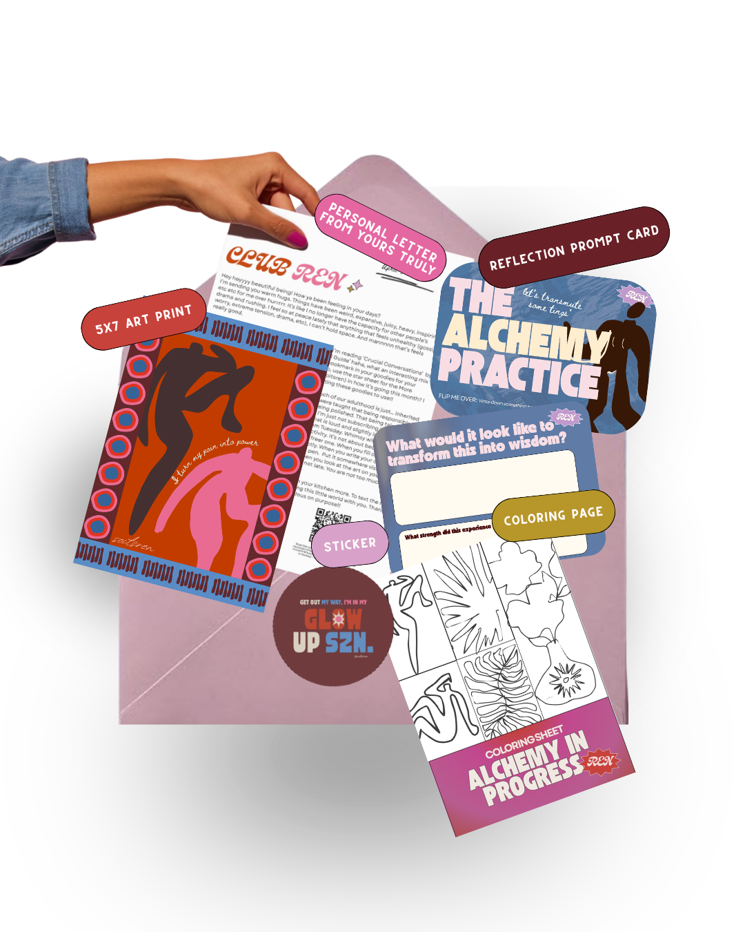 April’s CLUB REN drop is an invitation to transform! To release what you’ve outgrown. To honor how far you’ve come. To step into the version of you that’s been quietly emerging. Inside you’ll find a small collection of rituals, reflections, and artwork designed to remind you that change isn’t something to fear boo, it’s something to participate in. This month is about mf alchemy. Turning experience into wisdom, okayyy?! Turning pressure into power. Turning who you were into who you’re becoming. Keep what resonates. Leave the rest!! Just trust the transformation.